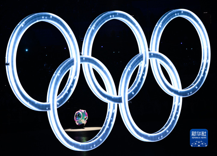 2月4日晚,第二十四届冬季奥林匹克运动会开幕式在北京国家体育场举行。这是开幕式上的“冰雪五环”。新华社记者杜宇摄