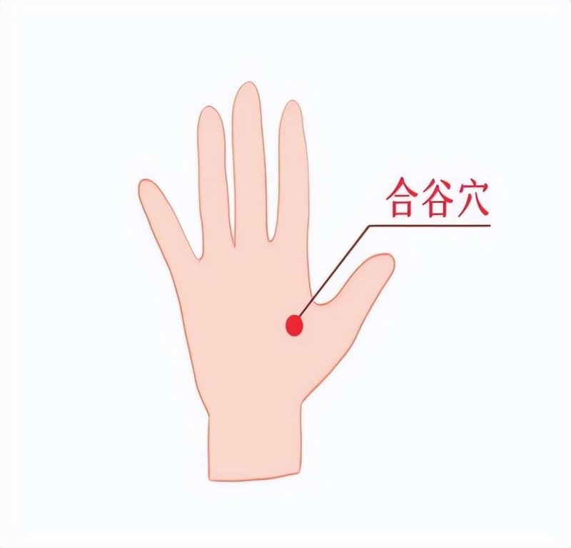 2.合谷:位于手背,第1、2掌骨间,第二掌骨桡侧中点处。