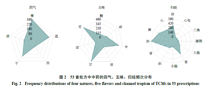2 中药治疗肺结节的四气、五味、归经频次分析