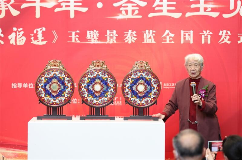 传承千年,金生玉见。4月16日下午,由中国工艺美术大师、国家级非物质文化遗产景泰蓝制作技艺代表性传承人钟连盛和中国工艺美术大师、中国玉石雕刻大师张铁成首度跨界创新,联袂创作的首款玉璧景泰蓝《千秋福运》在京亮相首发。