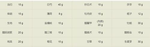 方选逍遥散加减:当归15g 白芍40g 炒白术15g 云茯苓15g 柴胡15g 薄荷8g 醋三棱15g 醋莪术15g 醋鳖甲20g 生牡蛎30g 醋元胡20g 醋郁金15g 生水蛭3g(冲服) 生鸡内金30g 生甘草10g